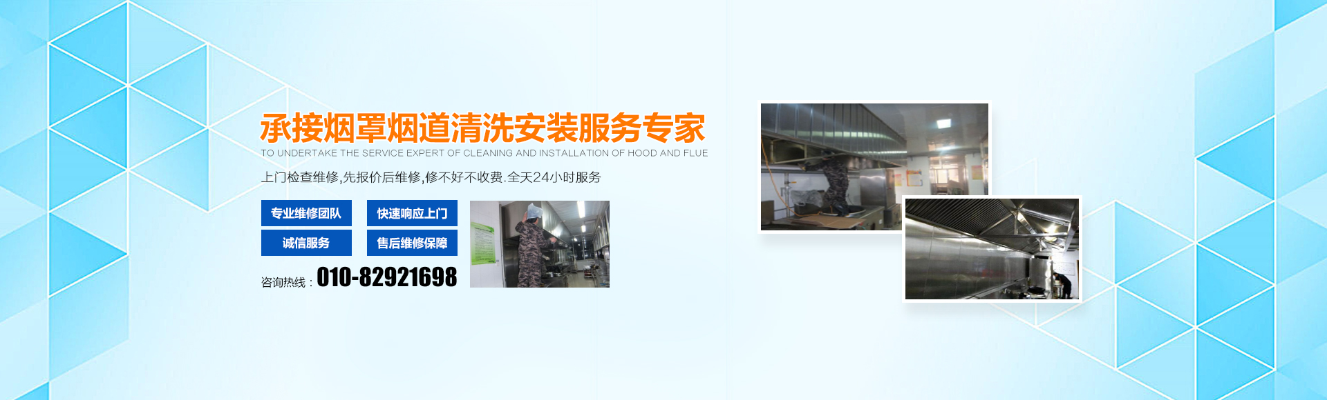 北京京英顺达科技有限公司是一家从事清洗烟道、清洗烟罩、清洗隔油池,维修大型厨房机械设备,维修制冷设备,维修电动机,维修各种水泵,维修风机,变频器维修,车床加工的公司(以上维修项目可提供配件)等等,服务于部队、高等院校学生餐厅及大型企业、事业单位职工食堂,本公司拥有维修人员,上门免费检测,欢迎以上客户致电,