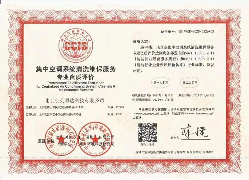 集中空调系统清洗维保服务专业资质评价